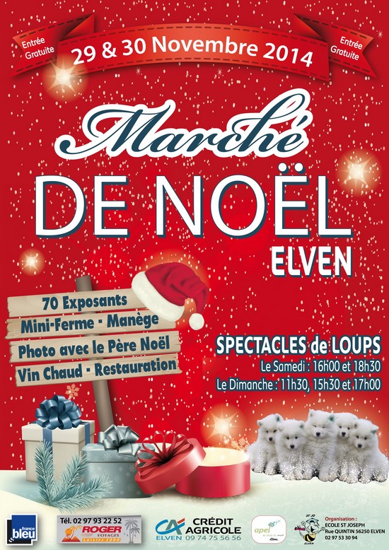 Marché de Noël à Elven Ecole St Joseph rue Quintin (56-pays de Vannes) Sam. 29 et Dim.30 Novembre 2014